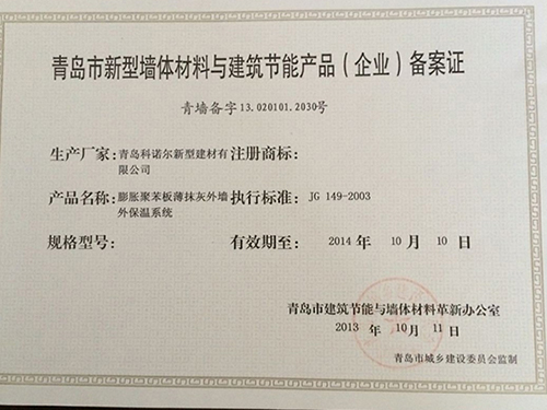 青島科諾爾新型建材有限公司主要產(chǎn)品:擠塑板( 阻燃B1級.B2級),泡沫板( 阻燃B1級.B2級)及各種造型,聚合物砂漿系列(粘結砂漿.罩面砂漿.膠粉.瓷磚粘接劑.填縫劑.界面劑),各種新型建材、保溫材料等等,公司產(chǎn)品遍銷全國各地,受到廣大用戶的一致好評。